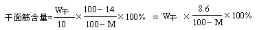 3、干面筋含量是以每百克含水量為14%的小麥粉含有干面筋的克數(shù)來表示的,如試樣質(zhì)量為10g而干面筋稱得質(zhì)量為W干(g),則干面筋含量可按下列公式計(jì)算:
